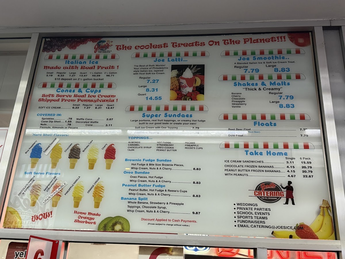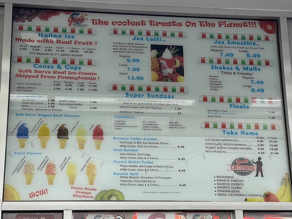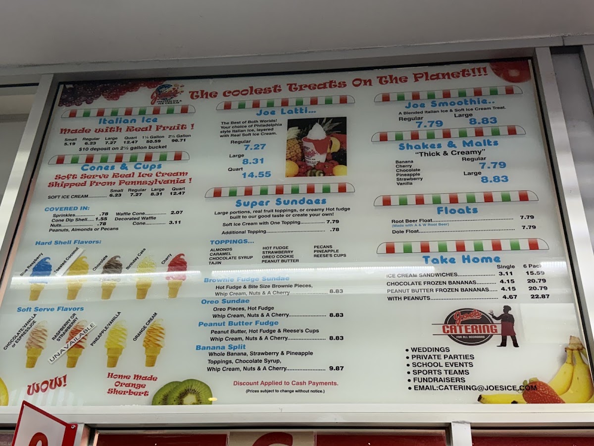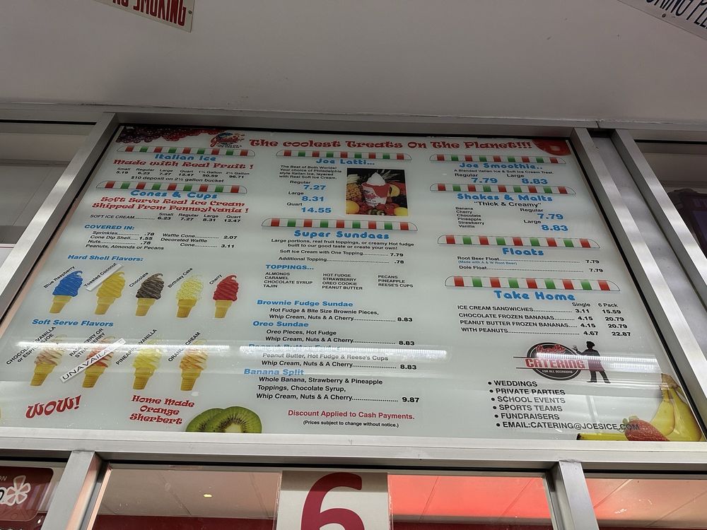 Joe's Italian Ice is more than just an ice cream shop; it's a sanctuary for those seeking a sweet escape. With menu offerings like the Joe Latti ($8.95) – a delightful blend of Italian ice and creamy soft serve – and a variety of Italian ice flavors starting at just $6.57, you'll find yourself transported to a realm of frozen bliss. The Soft Serve ($8.04) is indulgently rich, ensuring every lick and scoop delivers a wave of creamy goodness.